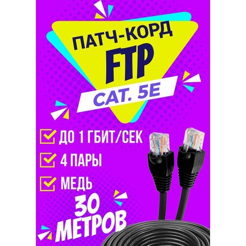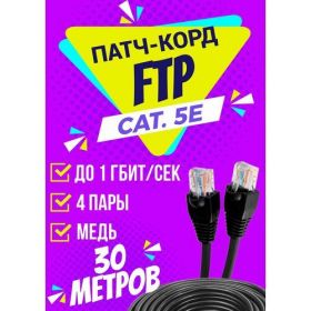 НАЙТИ ВЫГОДНЕЕ - Патч корд уличный FTP 30 метров, категории 5е, RJ45 интернет кабель LAN / сетевой / Ethernet / FTP патч-корд черный