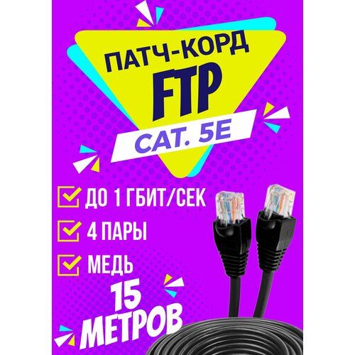 НАЙТИ ВЫГОДНЕЕ - Патч корд уличный FTP 15 метров, категории 5е, RJ45 интернет кабель LAN / сетевой / Ethernet / FTP патч-корд черный