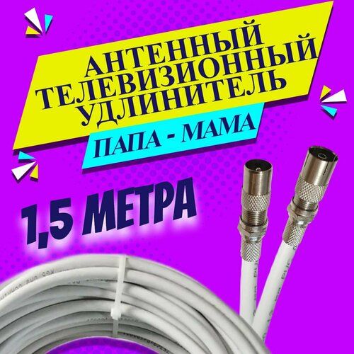 НАЙТИ ВЫГОДНЕЕ - Антенный удлинитель коаксиальный 1,5 метра. Шнур для телевизора. ТВ штекер - ТВ розетка (ТВ гнездо) Папа - мама. Антенный телевизионный кабель RG-6U