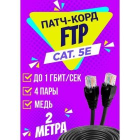 Найти - Патч корд уличный FTP 2 метра, категории 5е, RJ45 интернет кабель LAN / сетевой / Ethernet / FTP патч-корд черный