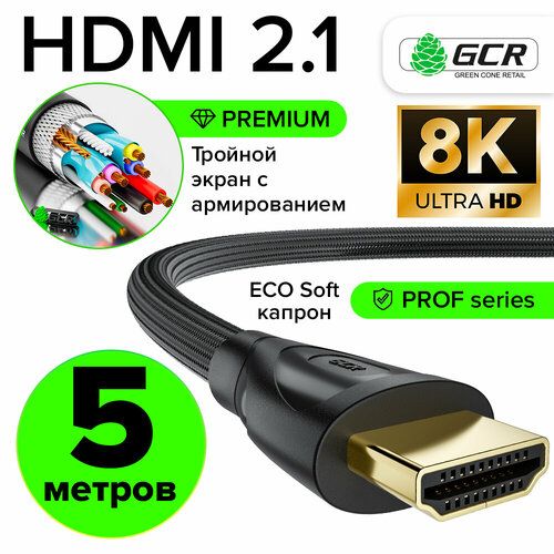 Найти - Провод HDMI 2.1 Premium ECO Soft Ultra HD 8K@60Hz 4K@120Hz 3D PS4 Xbox One разъемы 24К GOLD (GCR-H203) черный 5.0м