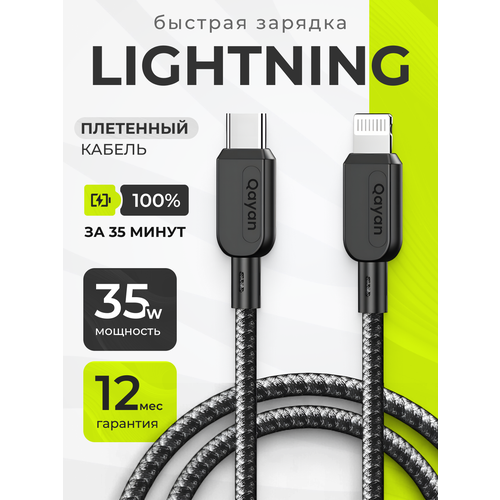 Найти - Кабель для зарядки айфона, 1.2 метра, 35W, Type-C-Lightning, провод зарядка для iphone, шнур для быстрой зарядки черный