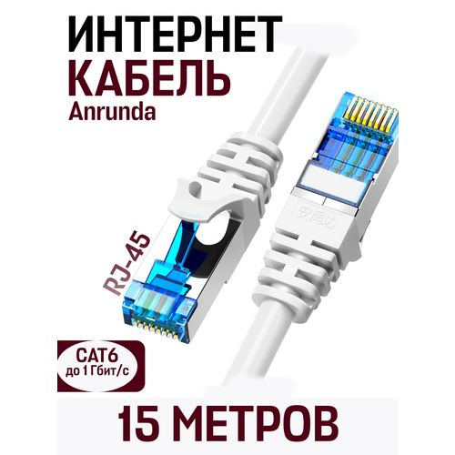 Найти - Кабель для подключения интернета LAN коммутационный шнур патч-корд витая пара Anrunda RJ-45 CAT6,10 гбит/c, 15 м, белый