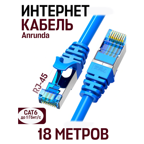 НАЙТИ ВЫГОДНЕЕ - Кабель для подключения интернета LAN коммутационный шнур патч-корд витая пара Anrunda RJ-45 CAT6,1 гбит/c, 18 м, синий
