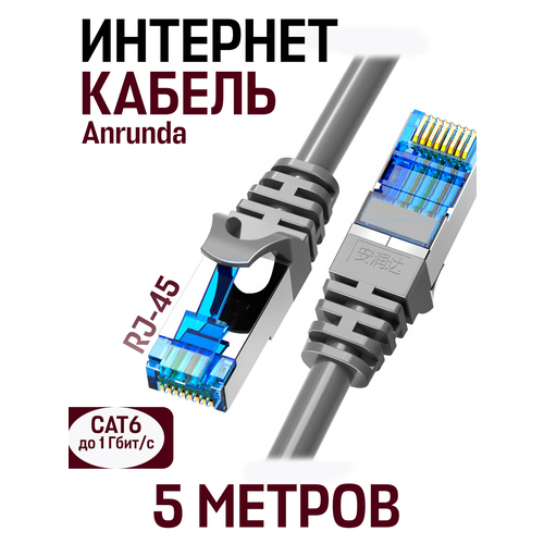 Найти - Кабель для подключения интернета LAN коммутационный шнур патч-корд витая пара Anrunda RJ-45 CAT6,1 гбит/c, 5 м, серый