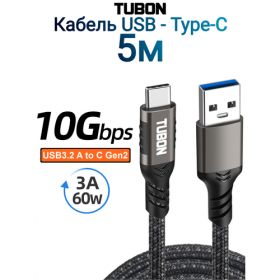 Найти - Кабель TUBON Type-A 3.2 - Type-C USBC 3.1 Gen2 10Gb 3A 60w US01 5м