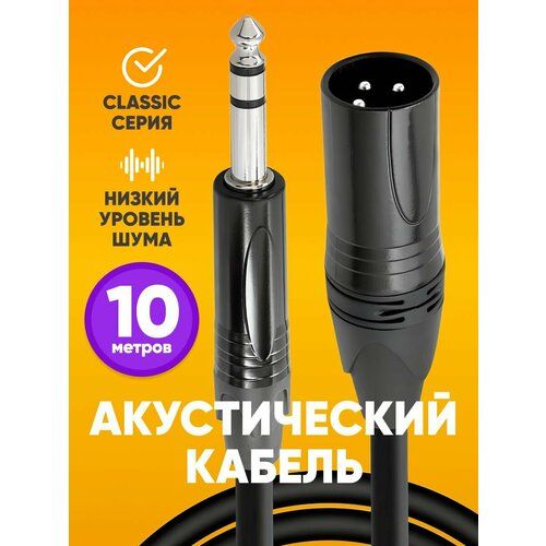 Найти - Акустический кабель инструментальный Jack 6,3 stereo - XLR (F) 10 метров / Кабель стерео, шнур jack 6.3 (6.5) / Провод микрофонный с защитой от помех