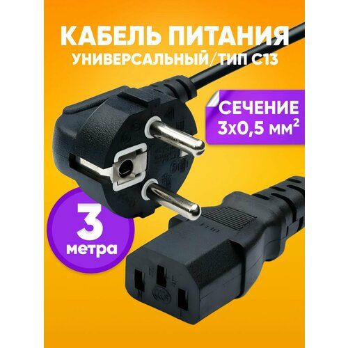 НАЙТИ ВЫГОДНЕЕ - Кабель питания сетевой 3 pin для компьютера 3м (евровилка шнур питания для процессора) IEC C13