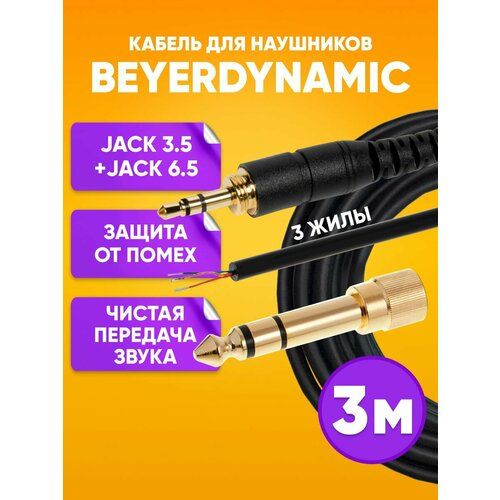 Найти - Кабель для наушников Beyerdynamic Jack 3,5 + Jack 6,5, длина 3 м, позолоченный штекер, защита от помех