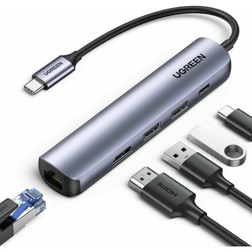 Адаптер UGREEN CM418 (10919) USB-C to 2xUSB 3.0+HDMI+RJ45 Ethernet Adapter+PD