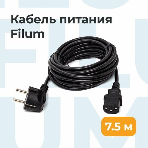 НАЙТИ ВЫГОДНЕЕ - Кабель питания Filum FL-PC10-EU-C13-7.5M CEE 7/7- С13, 3х1.0мм², 220В, 10A, чёрный, 7.5м