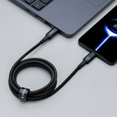 НАЙТИ ВЫГОДНЕЕ - Кабель для смартфона Moon Type-С – Type-С, 100Вт,5А, 1.5 м, черный, Deppa 72524