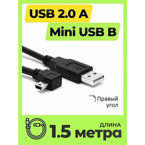 НАЙТИ ВЫГОДНЕЕ - Кабель USB - mini USB (1.5 метра, 150 см) угловой для зарядки черный, правый угол, питание и передача данных, папа папа
