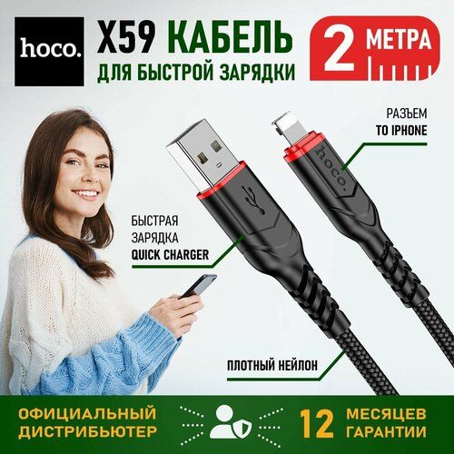 НАЙТИ ВЫГОДНЕЕ - Кабель USB для lightning для быстрой зарядки hoco X59, 2 метра / Провод лайтинг хоко, кабель для зарядки для iPhone