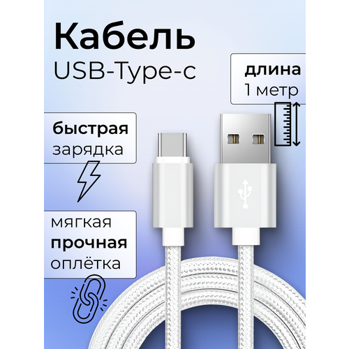 НАЙТИ ВЫГОДНЕЕ - Кабель usb type c / шнур для зарядки телефона / мягкая оплетка / провод 1 метр / Серебряный
