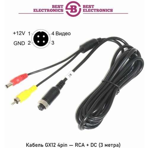 НАЙТИ ВЫГОДНЕЕ - Кабель для подключения автомобильных камер к регистратору / разъем GX12 4PIN авиационный на RCA (видео) и DJK-10B (DC питание) / длина 3 метра