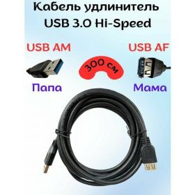 Кабель-удлинитель USB 3.0 AM/AF папа мама 3 метра - надежное решение для подключения периферийных устройств. Максимальная скорость передачи данных до 5 Гбит/с обеспечивает быструю и стабильную работу.