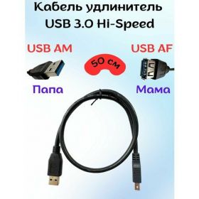 Кабель-удлинитель USB 3.0 AM/AF папа мама 50см подходит для внешних жестких дисков, USB-хабов и концентраторов, мышей и клавиатур, цифровых фотоаппаратов, флэш-накопителей, Bluetooth-адаптеров, веб-камер и принтеров, LED-гирлянд и других USB-устройств.