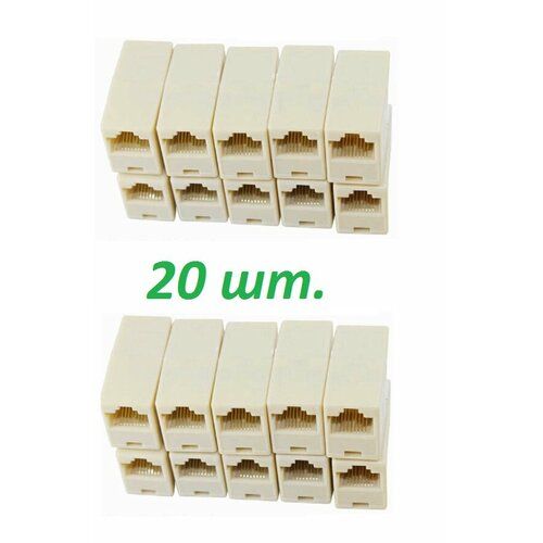 НАЙТИ ВЫГОДНЕЕ - Соединитель кабеля витой пары мама-мама 8P8C, проходник RJ-45, 20 шт.