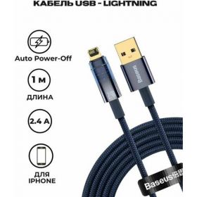 Найти - Кабель Baseus Explorer Series Auto Power-Off Fast Charging Data Cable USB to Lightning 2.4A 1m Blue (CATS000403)