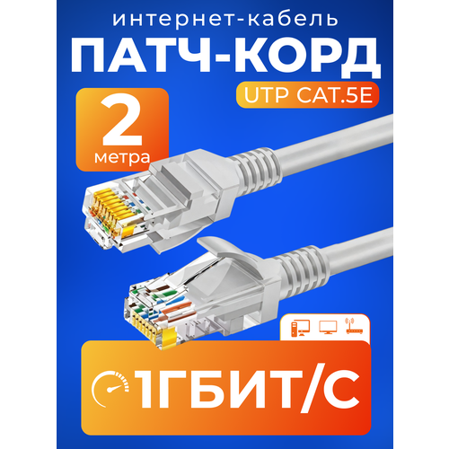 НАЙТИ ВЫГОДНЕЕ - Патч корд 2 м кат 5е, интернет кабель RJ45 Cat.5e UTP, сетевой Ethernet Lan для соединения интернета роутера, серый