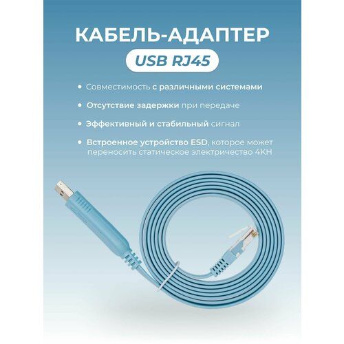 Кабель адаптера консоли USB к RS232 и RJ45 CAT5 предназначен для подключения компьютера или ноутбука к консольному порту маршрутизаторов Cisco и других сетевых устройств, использующих RS232 и RJ45 CAT5 интерфейсы.