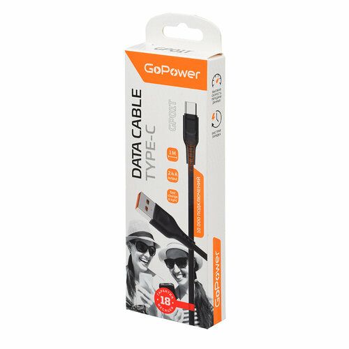 Кабель USB (m)-Type-C (m) GoPower GP01T 1.0м 2.4A ПВХ. Эргономичный дизайн благодаря уникальной форме с углублением для пальца кабель легко подключается, без лишних заломов и выдерживает до 10000 подключений. Длина шнура Type-C: 1 метр. Поверхность разъема: ПВХ, двухстороннее литье под давлением. Жильный провод: 43x0,08x2C + 10x0,08x2C медь высокой очистки. Разъем: два концевых медных штифта с позолотой, usb кабель прошел 24-часовой тест солевым туманом. Максимальный ток: 2,4 А. Поддержка зарядки и синхронизации. Кабель питания Type-C подойдет для зарядки и передачи данных к большинству Смартфонов, Powerbank (повербанк), беспроводных наушников, аккумуляторных фонарей, телефонов, андроид, кнопочных телефонов, IQOS (айкос), электронные кальяны.