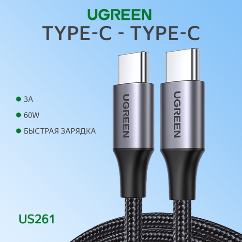 Кабель для зарядки и передачи данных UGREEN US261 USB-С - это высококачественный аксессуар, который обеспечивает быструю и безопасную зарядку устройств с поддержкой USB Type-C.