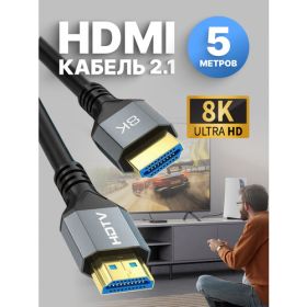 HDMI кабель 2.1 с разрешением до 8K при 60 Гц и 4K при 120 Гц длиной 5 метров - это профессиональное соединительное устройство для передачи аудио-видео сигнала высокого качества. Этот провод оснащен медными проводами, что обеспечивает стабильное подключение и высококачественное изображение и звук на телевизоре, мониторе, игровой приставке или другом оборудовании. Сигнал передается с большой четкостью, насыщенностью и высокой производительностью благодаря поддержке HDR и VRR. Особенности HDMI включают в себя прочную оплетку, металлические коннекторы для надежного соединения и защиту от повреждений. Стандарт HDMI 2.1 обеспечивает отличное изображения и поддерживает разрешения до 4K и 8K. Такой кабель идеально подходит для аудиовизуальных задач, таких как игры, просмотр фильмов и других видео материалов. Он обеспечивает надежное соединение и высококачественный видеосигнал для полного погружения в контент. Шнур HDMI 2.1 8K сочетает в себе лучшие материалы, долговечность, надежность и прочность, что делает его идеальным выбором для всех видеолюбителей и профессионалов, желающих получить наилучший опыт просмотра.