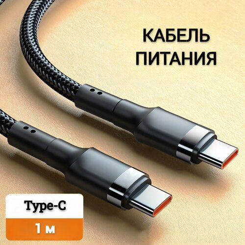 НАЙТИ ВЫГОДНЕЕ - Кабель питания Type-C 6А в нейлоновой оплетке, быстрая зарядка, черный с серебром, 1 м