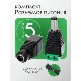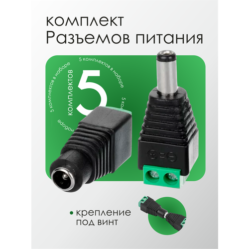 Разъем питания DC 2.1 х 5.5 для камер видеонаблюдения штекер + гнездо ("папа" + "мама") - 5 комплектов - это удобный и надежный способ подключить камеры видеонаблюдения к источнику питания. Каждый комплект включает в себя пять разъемов - пять "пап" и пять "мам".