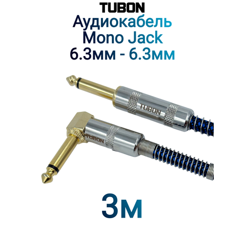 Кабель TUBON Моно угловой с пружинами 6.3 мм jack (M) - 6.3 мм jack (M) Моно OD6.0 ПВХ J007 - это высококачественный гибкий акустический кабель, предназначенный для использования с музыкальной аппаратурой, такой как гитары, микрофоны, синтезаторы, ресиверы, усилители и другие устройства с соответствующими разъемами.