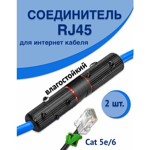 НАЙТИ ВЫГОДНЕЕ - Коннектор RJ45 F/ F (мама-мама) 8P8C переходник витой пары, IP68, соединитель для интернет-кабеля, 2 шт.