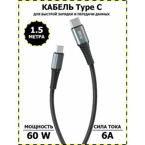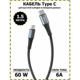 Найти - PD кабель Type C 6A - серый плетеный кабель для быстрой зарядки любых устройств 1.5 метра TPE 66W