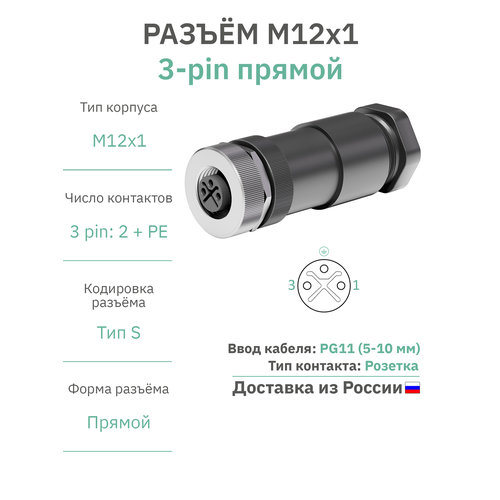 НАЙТИ ВЫГОДНЕЕ - Разъём M12 S-coding 3 pin: 2 + PE прямой / розетка (мама) / PG11 (5-10 мм диаметр под кабель) / модель RAZM-F12-C3-CODE-S-PG11