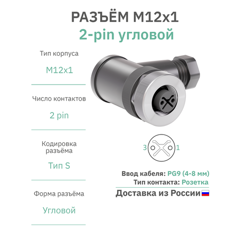 НАЙТИ ВЫГОДНЕЕ - Разъём M12 S-coding 2 pin угловой / розетка (мама) / PG9 (4-8 мм диаметр под кабель) / модель RAZM-F12-C2A-CODE-S-PG9