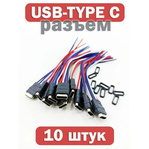 Штекер USB Type-C для быстрой зарядки, 10 штук. Провод 4-PIN длиной 8 см. Гнездо питания TYPE-C установочное на корпус. Выполнен в минимальном размере под формат разъема type-c. Дополнительно прилагается резиновая прокладка для установки "заподлицо". Цвет - черный; Форма - под разъем тайп-си; Размеры: ширина 10,5мм, высота 4,5мм.