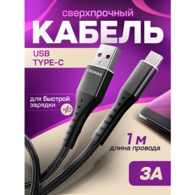 Найти - Кабель usb type c быстрая зарядка CRONAX ST-01, провод type c , усиленная оплетка, 1 метр, металлическая оплетка, черный