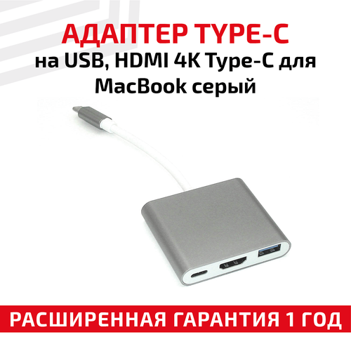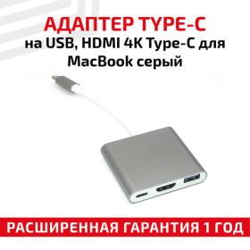 НАЙТИ ВЫГОДНЕЕ - Адаптер Type-C на USB, HDMI 4K Type-С для ноутбука Apple MacBook, серый