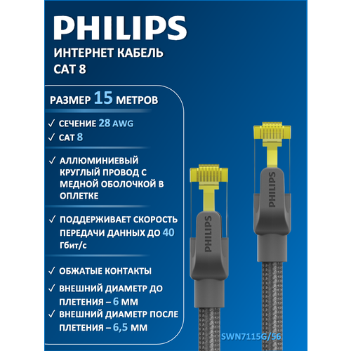 НАЙТИ ВЫГОДНЕЕ - Интернет кабель/патч-корд Philips CAT.8 SWN7115G/56, плетённый, 28AWG, 15 м
