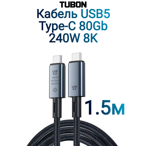 Кабель TUBON USB5 (USB4 V2.0) Type-C - Type-C USBC Thunderbolt 4/3 80Gb 240W 16K UU14 1.5м - это высококачественный аксессуар, который обеспечивает быструю зарядку и сверхскоростную передачу данных.