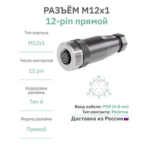 НАЙТИ ВЫГОДНЕЕ - Разъём М12 12 pin прямой / розетка (мама) / PG9 (6-8 мм диаметр под кабель) / модель RAZM-F12-C12-PG9