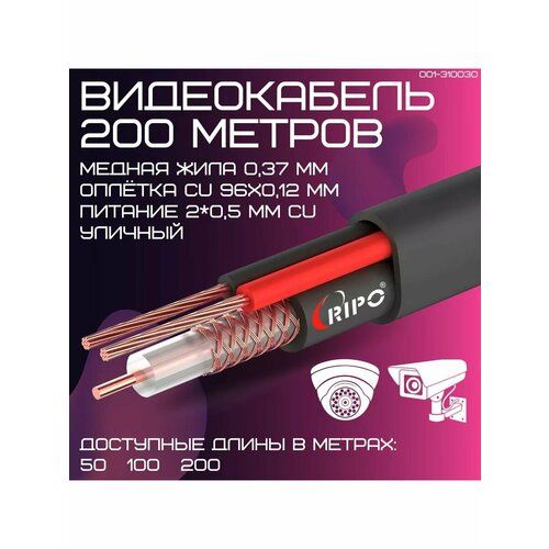НАЙТИ ВЫГОДНЕЕ - Кабель медный 200 м для камер видеонаблюдения комбинированный коаксиальный с питанием уличный КВК-2П+2x0,75мм outdoor 200 метров провод для подключения видеокамер экранированный внешний 001-310030