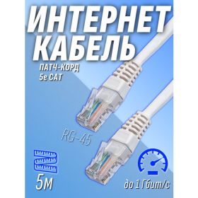 НАЙТИ ВЫГОДНЕЕ - Интернет кабель патчкорд UTP 5 метров категория 5e 1 Гбит/с белый