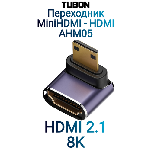Переходник адаптер Mini HDMI (M) - HDMI (F) Угловой 2.1 8K60Hz AHM05 предназначен для аудио и видео подключений.