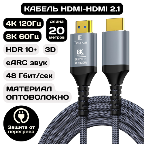 Найти - Оптический кабель HDMI 2.1 8К 60Гц и 4K 120Гц на 20 метров / Видеокабель HDMI нейлоновый с поддержкой HDR и eARC