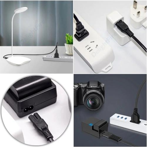 Кабель питания европейского стандарта 2pin IEC320 C7 предназначен для широкого спектра устройств, включая ноутбуки Dell, Canon, Epson, принтеры, радио, динамики, игровые приставки PS4 и XBOX, а также LG и Sony.
