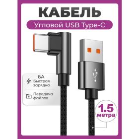 НАЙТИ ВЫГОДНЕЕ - Угловой кабель USB Type C быстрая зарядка 6A 66W 1,5 метра, нейлоновый провод USB Type-C шнур 1,5 м