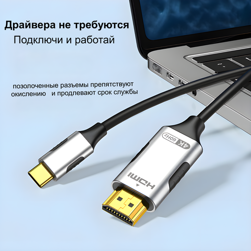 Кабель Jasoz HDMI-Type-c 4K 60Hz, HDR, eARC, 2м представляет собой высококачественный видеокабель, обеспечивающий быстрое и стабильное соединение с множеством устройств с поддержкой Thunderbolt 3. Благодаря усовершенствованной технологии передачи аудио eARC достигается высококлассная передача звука и изображения без задержек. Auto Low Latency Mode, Quick Frame Transport, Ultra High Definition (UHD), HDR 10+ и Dolby Vision гарантируют безупречное качество. Провод оснащен позолоченными контактами, что является залогом надежности и долговечности. Помехи исключены полностью так как кабель экранированный. Чистое и стабильное изображение порадует Вас и принесет только положительные эмоции от просмотра ТВ, игр на ПК, ноутбуке, прослушивания музыки. Частота 60Hz обеспечит плавную картинку. Достаточно подключить к нему ваши устройства и наслаждаться видео высокой чёткости. Он позволит Вам смотреть любимые фильмы и передачи в 4К на внешнем устройстве, подключив к нему ваш Macbook или другое устройство с разъемом USB-C. Кабель адаптер Type-C - HDMI 4K 60Hz также совместим с Thunderbolt.