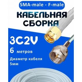 Найти - Кабельная сборка 75 Ом на 3C-2V белого цвета с разъемами SMA-male - F-male, 6 метров